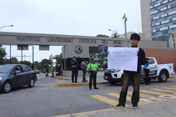 Marchando por la avenida universitaria hasta la universidad Católica del Perú, diversos estudiantes universitarios y miembros de las 9 escuelas de trabajo social se congregaron para protestar contra la reforma de ley.